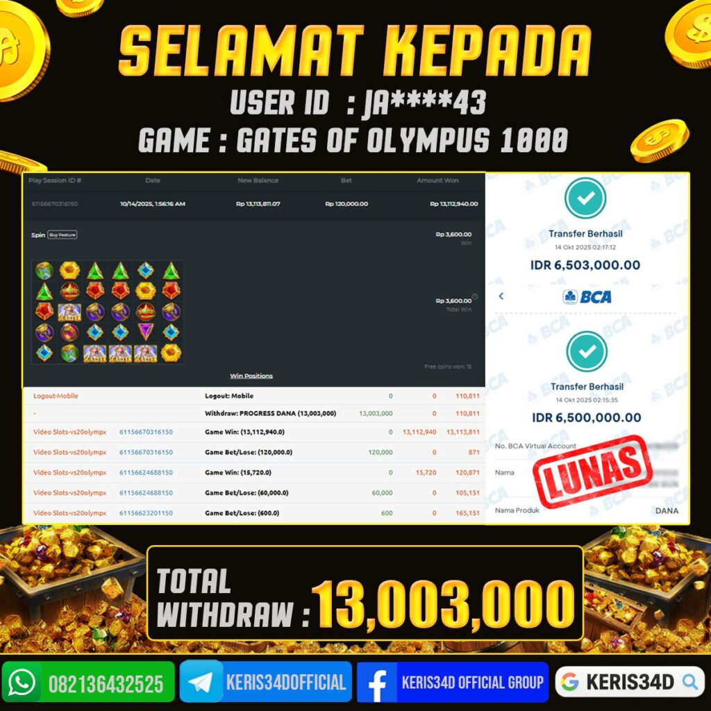 JACKPOT SLOT GACOR GATES OF OLYMPUS 14 OKTOBER 2025, Jackpot Slot Gacor, Kemenangan Slot, Bukti Kemenangan Slot, Kemenangan PRAGMATIC PLAY, Menang Slot online, Slot Gacor, Situs Aman Terpercaya, WD Berapapun Pasti DI Bayar Tuntas, Maxwin Slot Online.