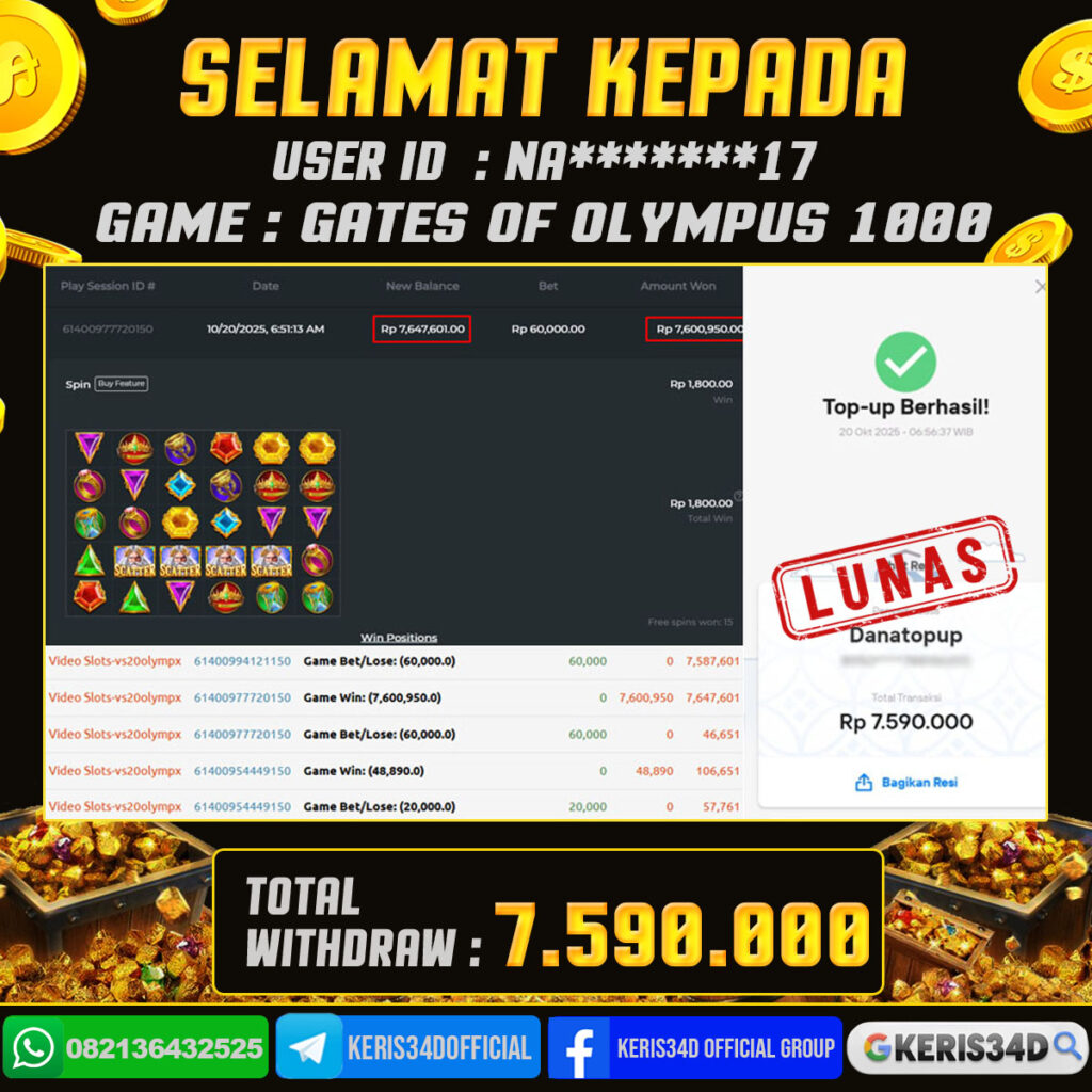 TOTAL KEMENANGAN : Rp. 7.590.000