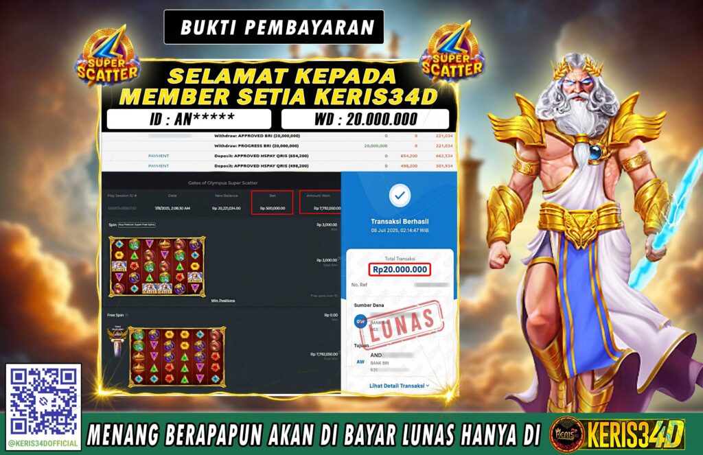 SSetiap hari, member KERIS34D berhasil meraih jackpot besar dari berbagai provider slot ternama yang kami sediakan, seperti Pragmatic Play, Habanero, PG Soft, dan masih banyak lagi. Kami secara rutin menampilkan bukti screenshot atau rekapan kemenangan yang berhasil diraih, mulai dari kemenangan ratusan ribu hingga puluhan juta rupiah. Semua slip kemenangan ini kami hadirkan untuk membuktikan bahwa di KERIS34D, peluang menang itu nyata