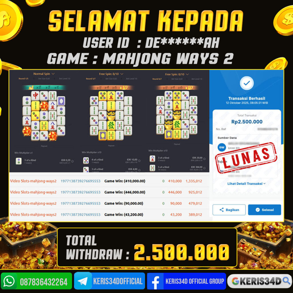 JACKPOT SLOT GACOR MAIN MAHJONG WAYS 2 12 OKTOBER 2025