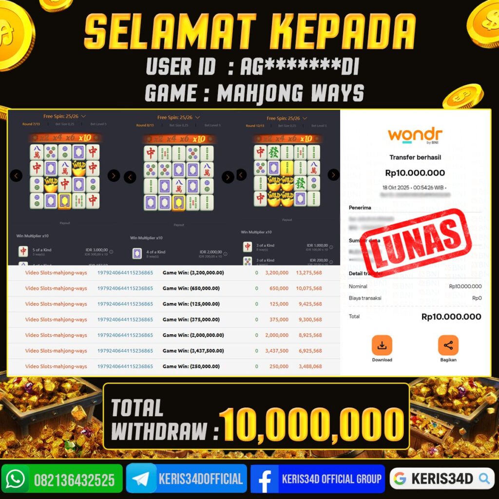 JACKPOT SLOT GACOR MAIN MAHJONG WAYS 2 18 OKTOBER 2025
