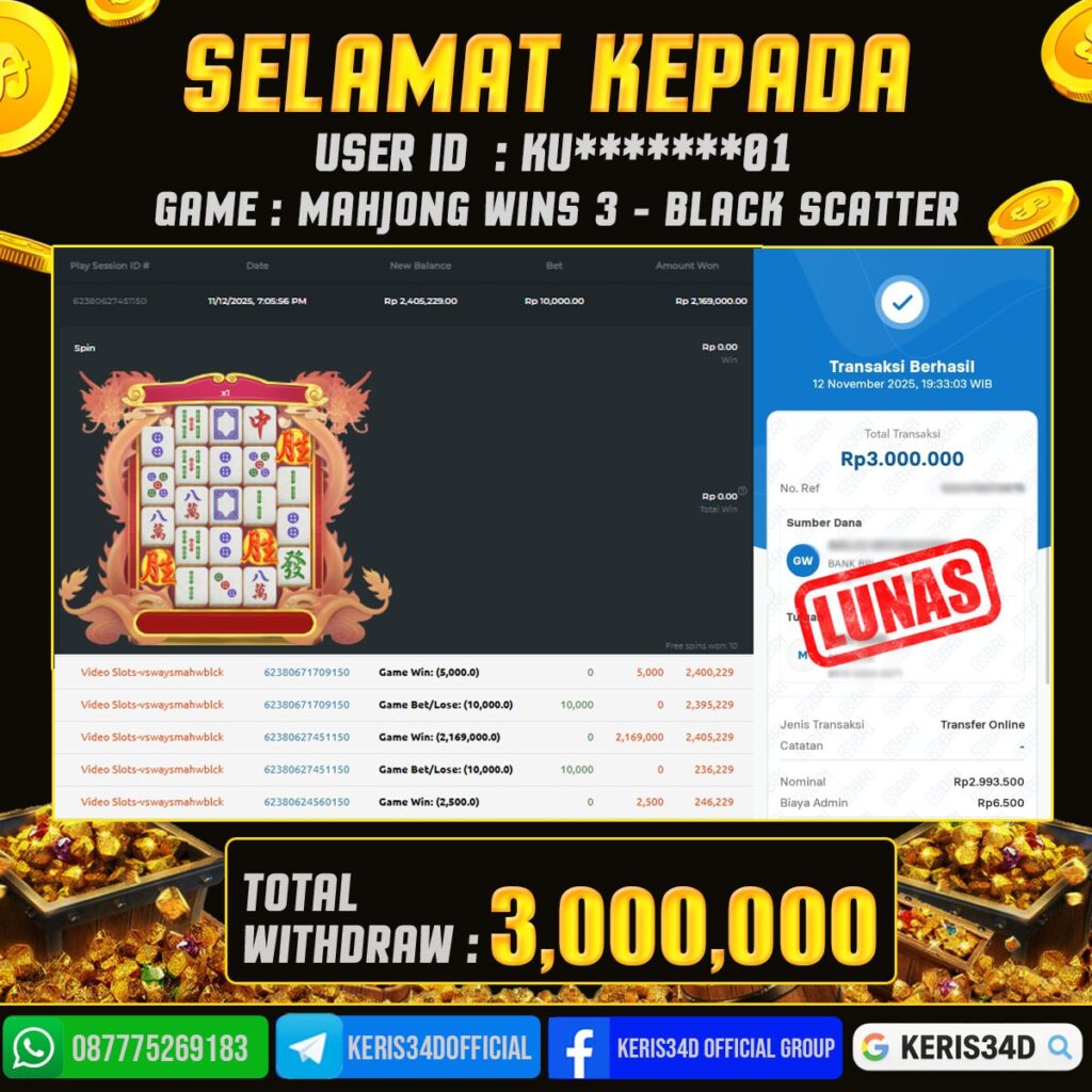 JACKPOT SLOT GACOR MAIN MAHJONG WINS 3 – BLACK 12 NOVEMBER 2025, Jackpot Slot Gacor, Kemenangan Slot, Bukti Kemenangan Slot, Kemenangan PRAGMATIC, Menang Slot online, Slot Gacor, Situs Aman Terpercaya, WD Berapapun Pasti DI Bayar Tuntas, Maxwin Slot Online.