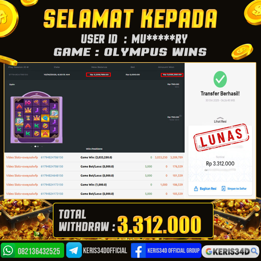 JACKPOT SLOT GACOR OLYMPUS WINS 30 OKTOBER 2025, Jackpot Slot Gacor, Kemenangan Slot, Bukti Kemenangan Slot, Kemenangan PRAGMATIC PLAY, Menang Slot online, Slot Gacor, Situs Aman Terpercaya, WD Berapapun Pasti DI Bayar Tuntas, Maxwin Slot Online.
