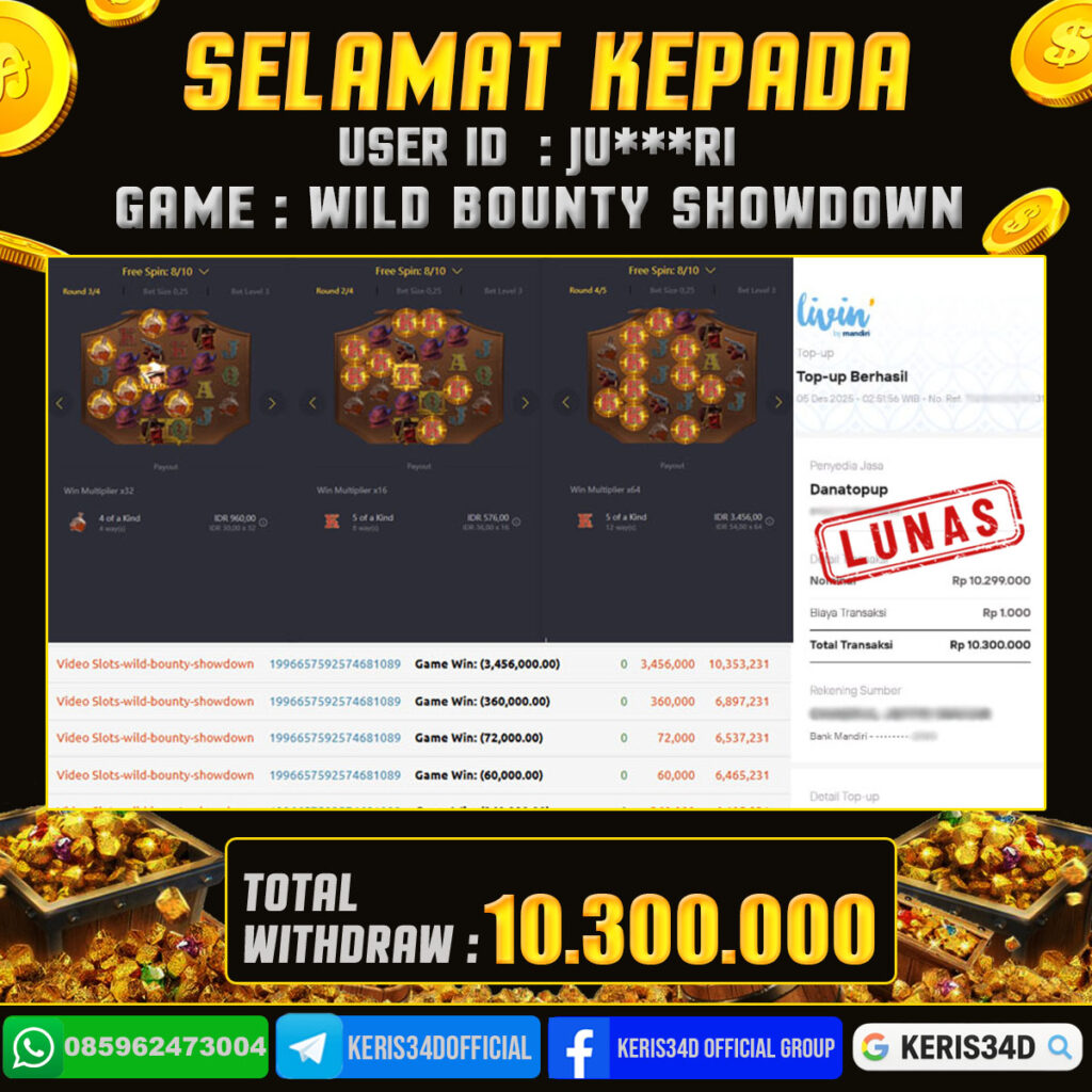 KERIS34D dikenal sebagai situs terpercaya yang selalu menghadirkan pengalaman bermain slot online yang aman, fair, dan berlisensi resmi. Di sini, kami tidak hanya sekadar memberikan janji, tapi bukti nyata berupa slip kemenangan yang dapat Anda lihat secara langsung.