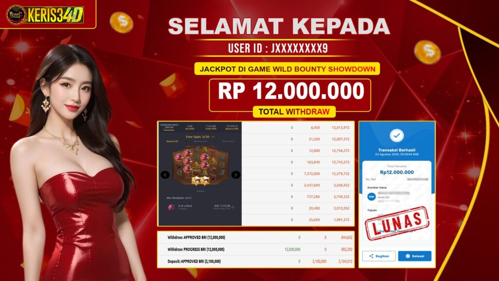 KERIS34D dikenal sebagai situs terpercaya yang selalu menghadirkan pengalaman bermain slot online yang aman, fair, dan berlisensi resmi. Di sini, kami tidak hanya sekadar memberikan janji, tapi bukti nyata berupa slip kemenangan yang dapat Anda lihat secara langsung.